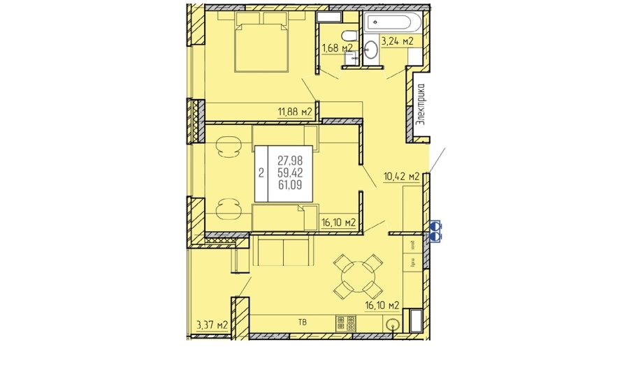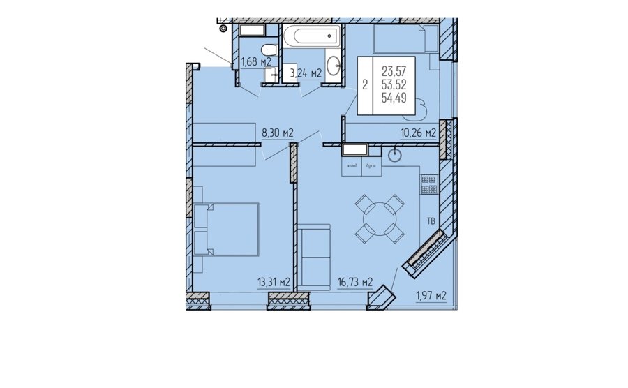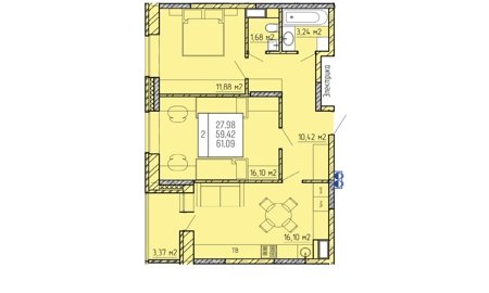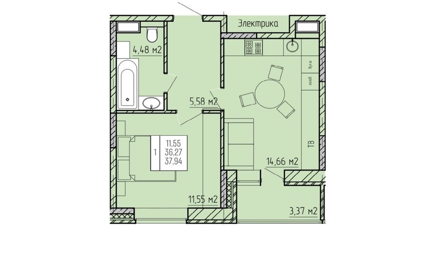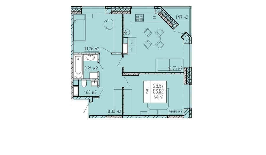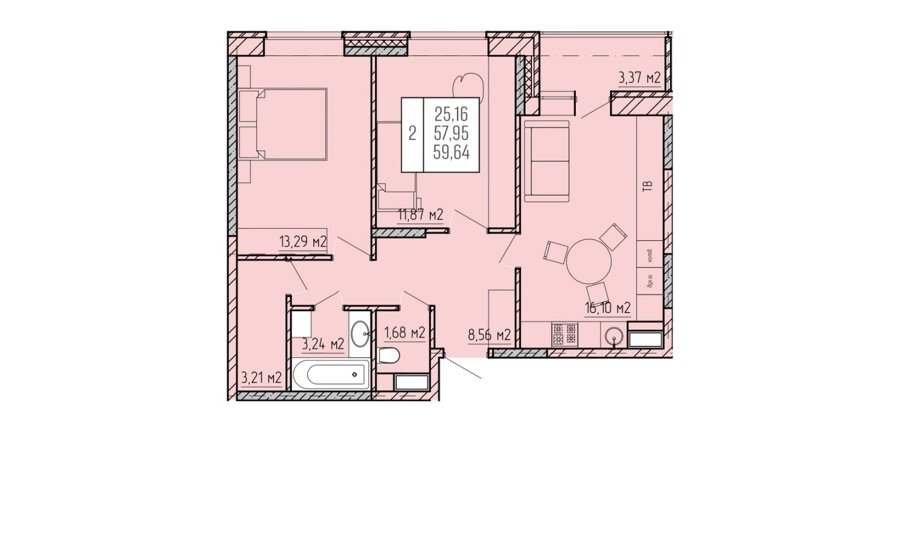 Площадь от 55.5 м2