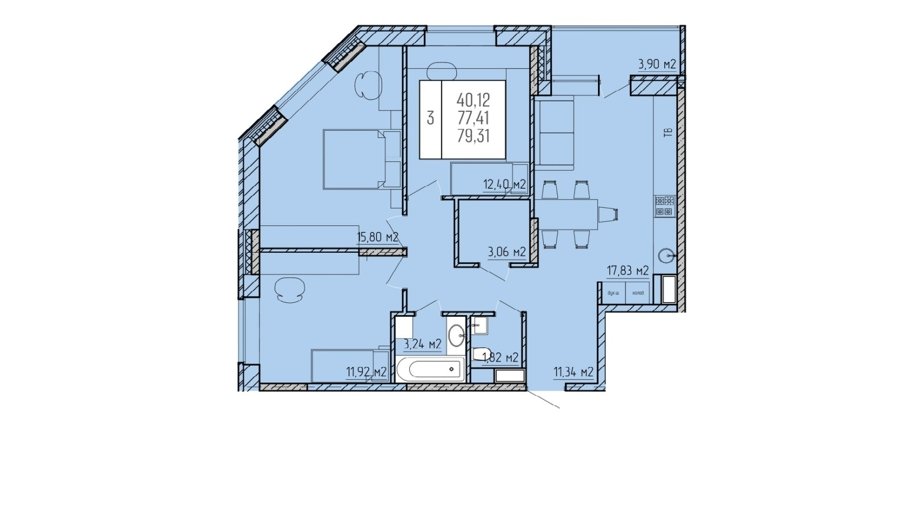Площадь от 81.3 м2